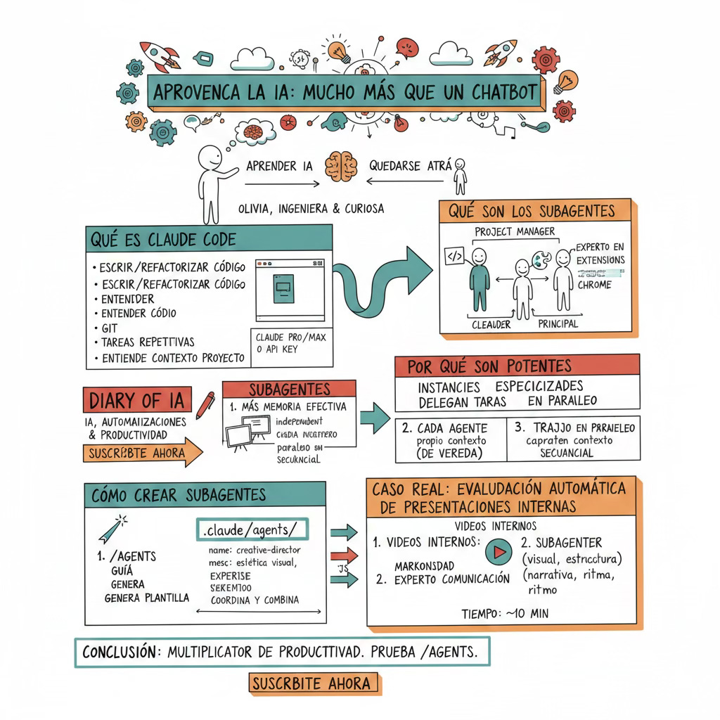 Los subagentes son instancias especializadas de Claude que el agente principal crea para delegar tareas específicas. Imagina al agente principal como un "Project Manager" que contrata a especialistas temporales para resolver problemas concretos sin perder el hilo de la conversación principal.